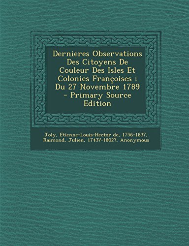 There are 9 primary works and 27 total works in the Read Dernieres Observations Des Citoyens de Couleur Des Isles Et Colonies Francoises; Du 27 Novembre 1789 - Primary Source Edition PDF Series Please note: This series is comprised of one epic ... In the greater Kindle Dernieres Observations Des Citoyens de Couleur Des Isles Et Colonies Francoises; Du 27 Novembre 1789 - Primary Source Edition PDF Chronology, ...
